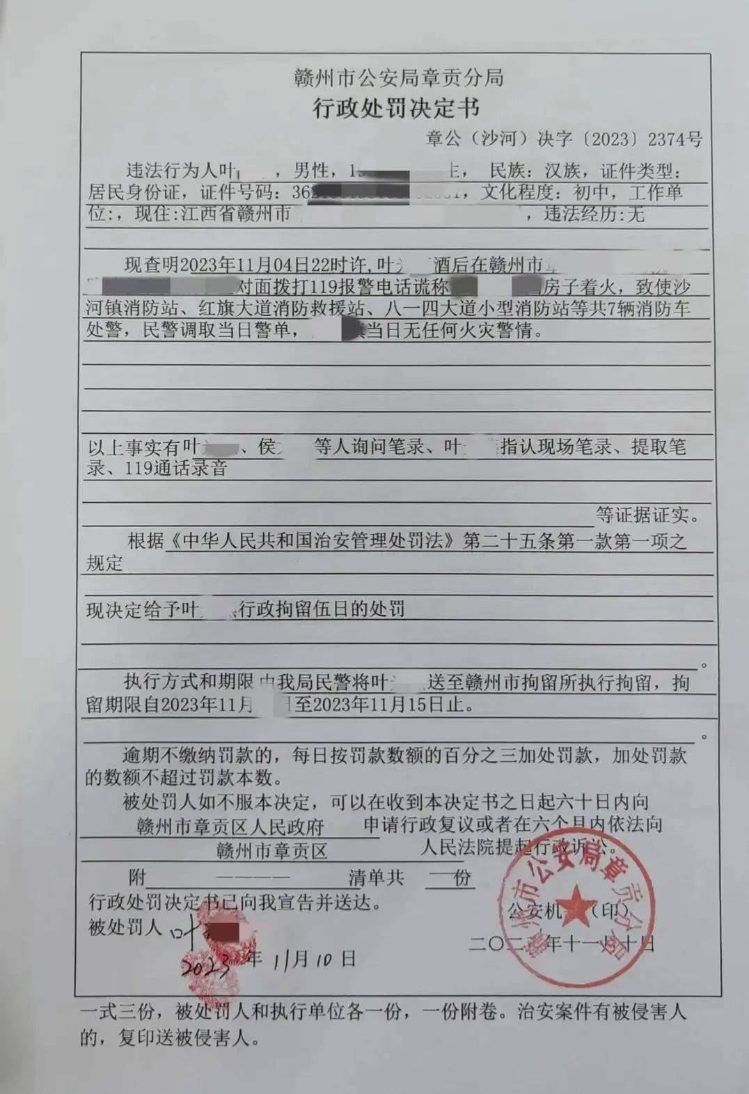 最终叶某被公安机关