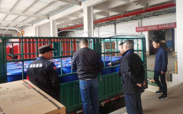 事件:11月13日,接民众举报,湖南一公司一号前坪卸货台有一辆货运车疑似违规转运危险货物。该批贴有“特戊酰氯”标签的货品共计140桶,每桶重达200公斤总重量28吨。