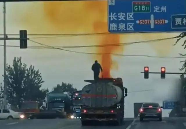 事件:11月13日,河北石家庄公路上一辆罐车疑气体泄漏,押运员上去查看情况,未料车顶直接爆开令人触目惊心。