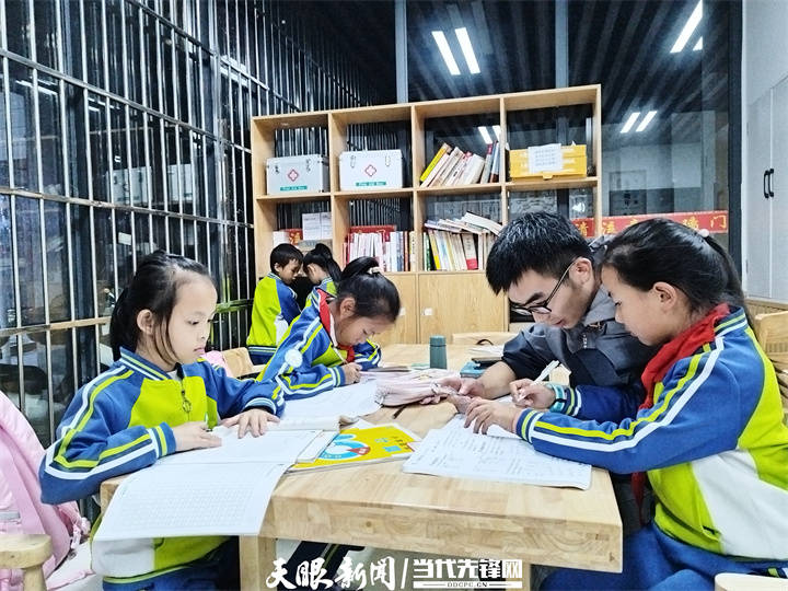 贵州理工学院志愿者罗土荣辅导社区青少年儿童学习