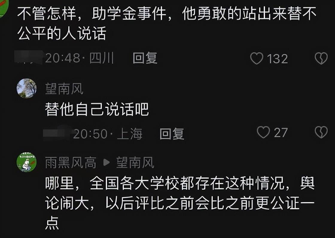 有了“第一个吃螃蟹”的人,各个学校里这样的不公平现象得以进一步曝光。希望助学金、奖学金可以得到规范。