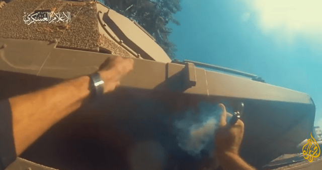 然而加沙战事进入第三周以后,这个理由就站不住脚了。不久前,哈马斯公布了新一批战斗视频,视频中的哈马斯战士依然没有更换战术,利用地道和小路机动,在建筑和废墟中隐蔽伏击以军装甲部队。其中,最令人印象深刻的是一名哈马斯战士从一片碎砖烂瓦中冲出来,将疑似穿甲弹改装的爆炸物塞进以军“梅卡瓦”坦克底盘与炮塔的缝隙中,并把爆炸物尾部的引信拉开,接着他转身往回跑。跑了大约十几米后镜头回转,可以看到一团灰白色烟雾升起,如果不出什么意外,应该是那辆孤立无援的“梅卡瓦”已被摧毁甚至殉爆。