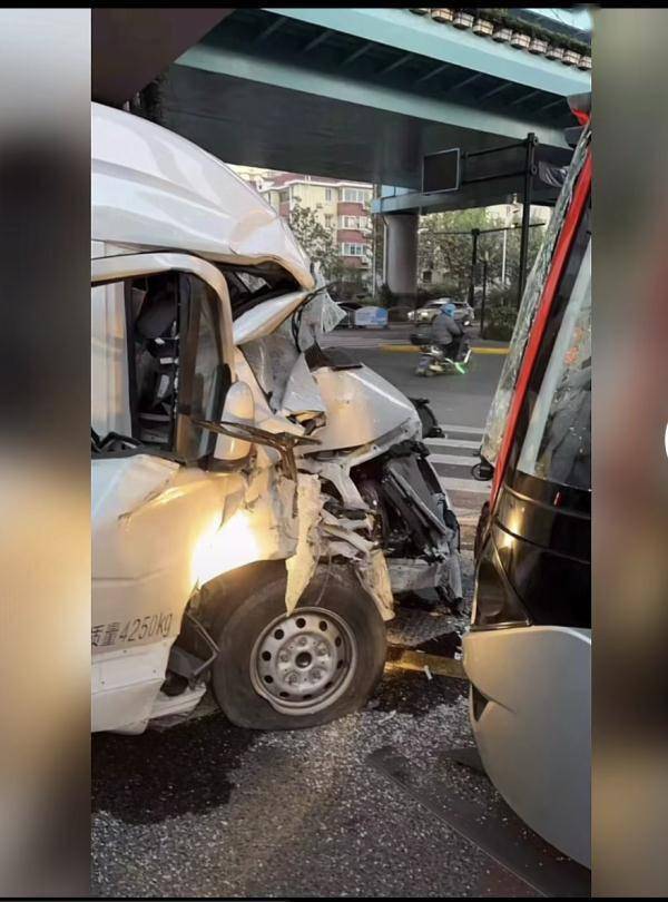 11月20日,据网友爆料,上海街头一辆面包车撞上71路公交车。 网络图