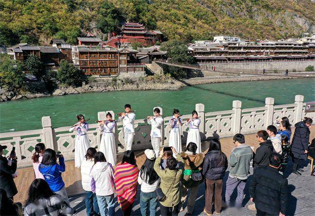 11月19日,文旅志愿服务“五进”活动在甘孜州泸定县泸定桥广场、滨河广场同时举行。此次活动以景区为载体,结合沉浸式演出、非遗项目互动体验,开展面向民族地区的重点文化和旅游志愿服务。