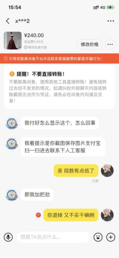 11月20日,据江苏网警消息,近日,南京的徐女士在某二手交易平台上转让自己的闲置物品。徐女士刚挂出商品不久,便收到了一条陌生信息,对方没打招呼就直接拍下商品。过了一会,对方没有付款,徐女士便开始与对方进行沟通。