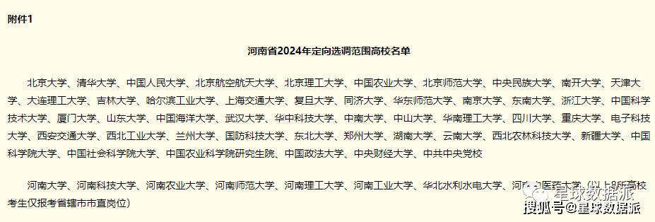 2024河南、陕西两省定向选调公告密集发布,两省目标院校名单公布。与其他部分省份严格的门槛相比,河南、陕西两省对于名校来说可以算是皆大欢喜。河南的目标院校涵盖了全部39所985加3所双一流B类院校,而陕西涵盖了39所985中的37所(除国防科大和中央民族大学)。