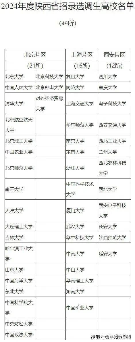 2024陕西定向选调目标院校名单