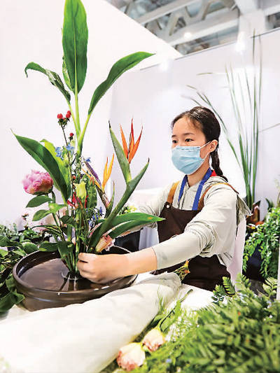 今年6月,在山东济南举办的第七届全国残疾人职业技能大赛上,参赛选手正在进行插花比赛。 徐 舟摄(人民视觉)