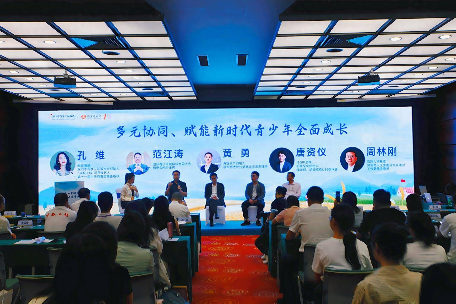 当天下午还举行了圆桌对话环节。深圳大学教授、深圳市人大常委会社会建设工作委员会委员周林刚,涌容资产创始人、深圳市传梦公益基金会常务理事黄勇,IBOBI国际家庭亲子俱乐部总裁、初宸文化创始人唐资仪以及国际青少年模拟联合国大会组委会执行主席范江涛四位嘉宾围绕“多元协同,赋能新时代青少年全面成长”主题碰撞思想,相互启迪。