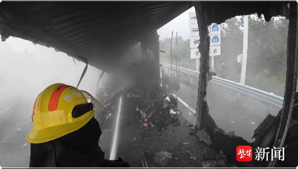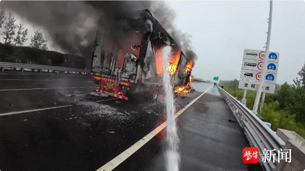 消防员到场后将道路用消防车挡住做到警戒作用,然后出2支水枪熄灭火势,无人员伤亡,据了解,当时快递货车车主疲劳驾驶撞上前面货车,撞上瞬间车头起火,驾驶室门被卡住,车主从前档玻璃洞口钻出逃生。