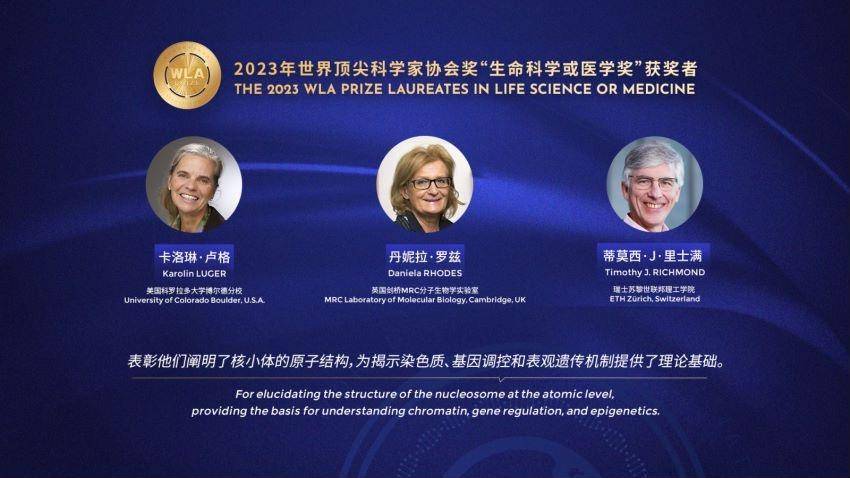 “生命科学或医学奖”授予英国剑桥MRC分子生物学实验室名誉课题组负责人丹妮拉·罗兹(Daniela Rhodes),美国科罗拉多大学博尔德分校教授、生物化学讲席教授卡洛琳·卢格(Karolin Luger)和瑞士苏黎世联邦理工学院生物大分子晶体学名誉教授蒂莫西·J·里士满(Timothy J. Richmond)。
