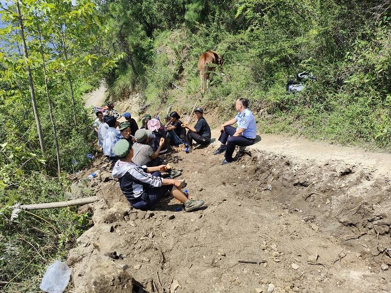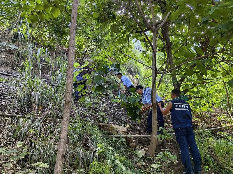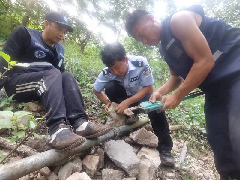 山高坡陡,随时伴有山体滑坡的危险,在这种恶劣条件下,水管维修不是易事。为及时确保村民正常饮用水,民警第一时间分析水管阻断位置,安排水管抢修分工,尽管天气炎热,抢修工作在“你一锹我一铲”的热火朝天中顺利进行着,经过民警、网格员通力协作,淤泥一抔被清理出来,更换水管的把接口拧紧了,辛苦后的笑容洋溢在大伙的脸上。