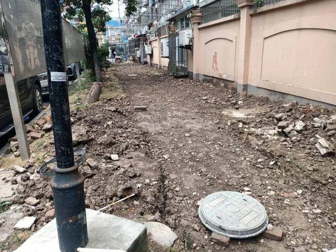 由于大唐花园小区建造时间较早,大门口主干道西侧机动车、非机动车、行人混行的方式存在一定安全隐患。为了给居民提供更加便利和安全的出行环境,党总支在听取多方意见和建议后决定对主干道西侧进行铺设人行步道工程。
