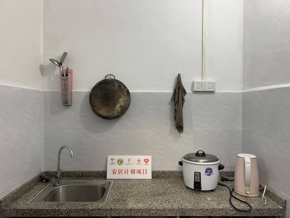 在改造中,厕所改造是重点。由于城乡房屋结构差异,在乡村想要实现蹲厕改坐厕有一定难度。首先要把地面做平、抬高,解决阶梯的障碍;接着,还要扩大化粪池,重新安装水管。施工队完成基础改造后,又将地面贴上防滑砖,在马桶两侧和墙面上安装扶手,方便谭叔抓握和借力;还将厕所墙面重新粉刷,看起来干净整洁。此外,谭叔家里原本充当灶台的长条木桌被撤走,取而代之的是按照谭叔坐姿身高打造的麻石灶台,灶台配有水池,谭叔再也不用推着轮椅找水源洗菜了。“我上厕所、洗手比以前轻松多了!”谭叔坐在轮椅上,笑着说。