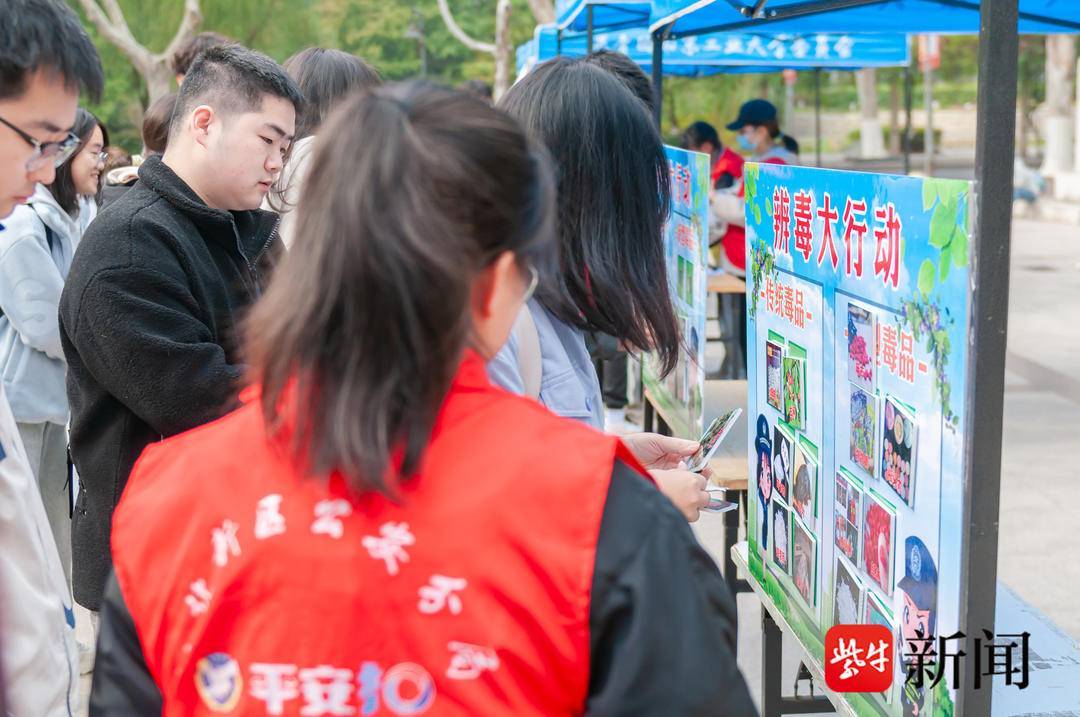 同时,为提高大学生识毒、防毒水平,预防抵制毒品侵害,江北新区公安分局禁毒大队民警在现场展示了各类毒品模型,为学生们讲解新型毒品种类和危害,让学生们在生活中能够做到“识毒、防毒、拒毒”。