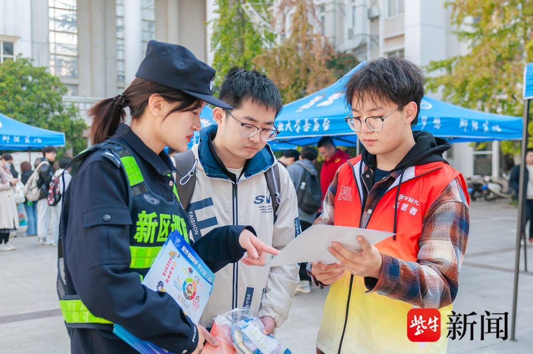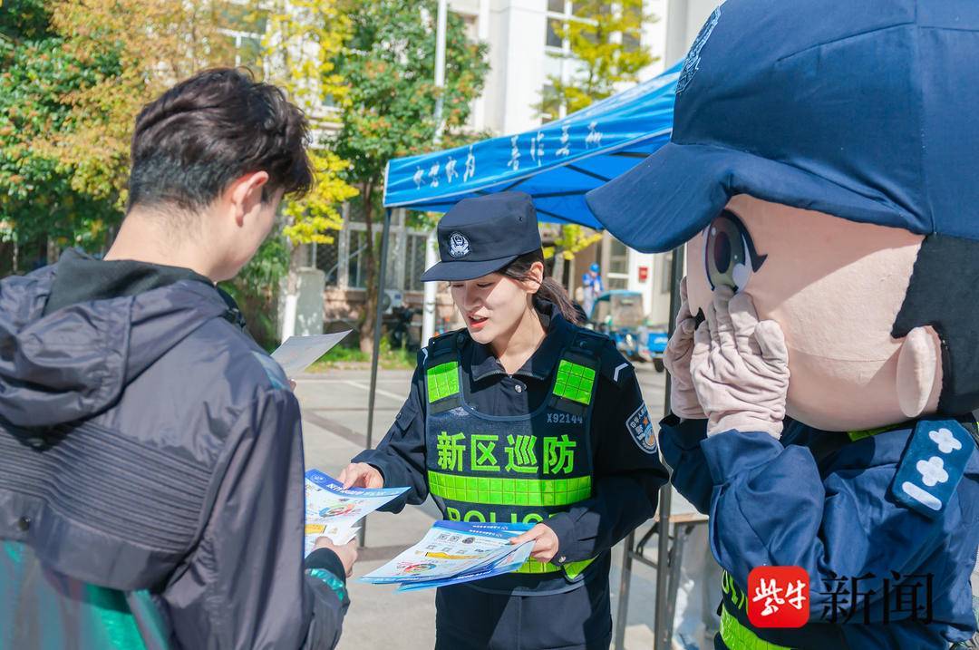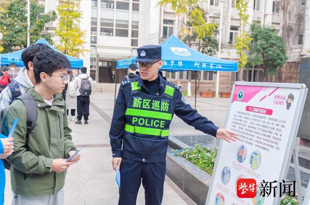 扬子晚报网11月20日讯(通讯员 江景轩 记者 梅建明)近日,南京市公安局江北新区分局顶山派出所联合分局禁毒大队、南京江北新区见义勇为基金会,一同走进辖区南京工业大学江浦校区,为在校大学生们开展了安全宣传教育活动。
