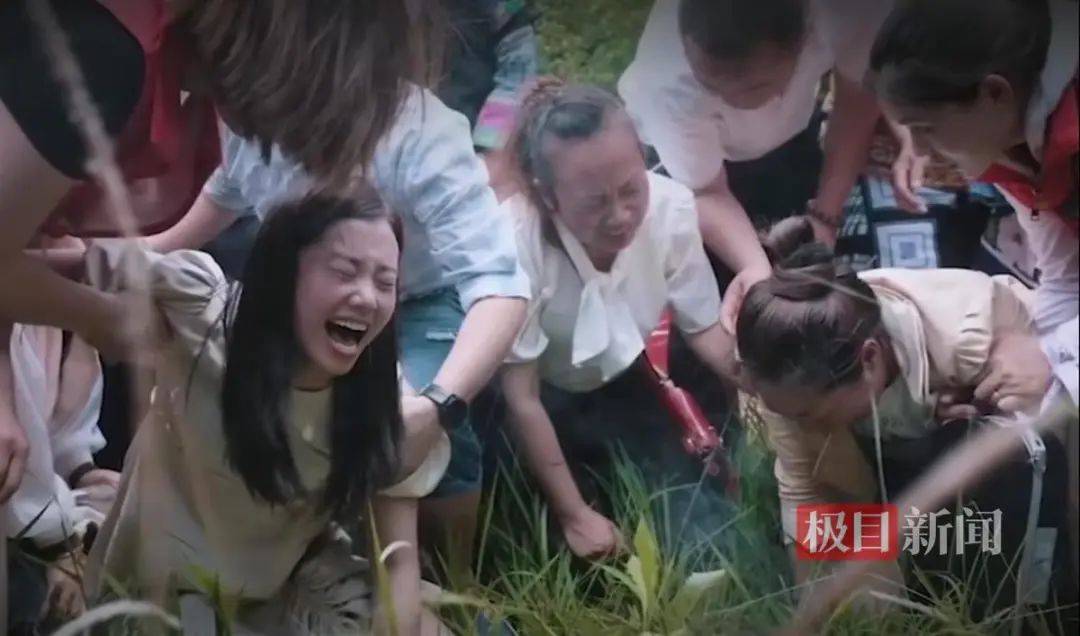 2021年5月,被拐26年后回家的杨妞花(左一)在父亲坟前痛哭 (视频截图)