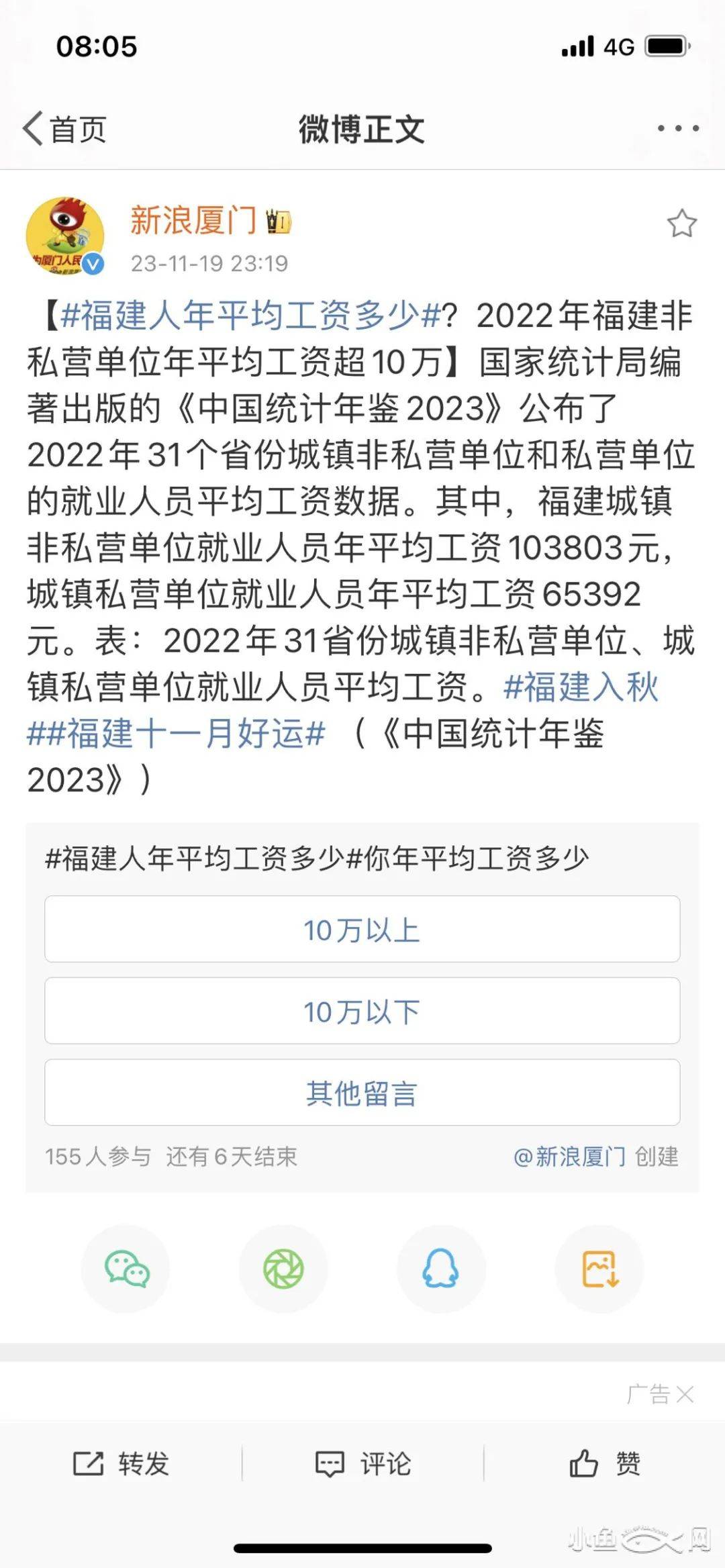 其中,福建城镇非私营单位就业人员年平均工资103803元,城镇私营单位就业人员年平均工资65392元。