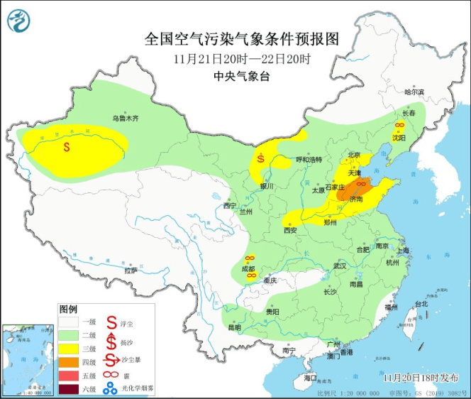 20日夜间到21日,山西南部、陕西关中等地的部分地区有轻度霾天气。