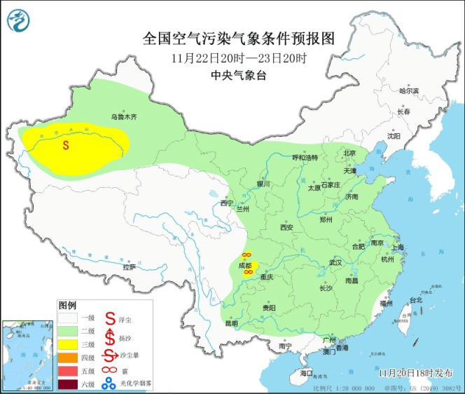 20日夜间至22日,区域大部大气扩散条件一般,部分地区有轻度霾。23日白天起,受冷空气影响,大气扩散条件逐渐转好。
