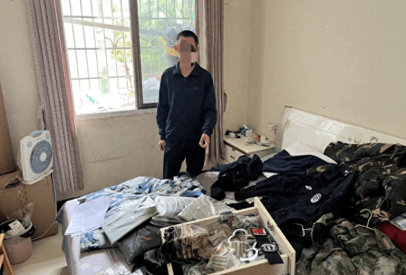 四川省自贡市荣县,一男子假冒现役军人四处兜售仿制军服及军用品。目前,该男子已被刑事拘留。