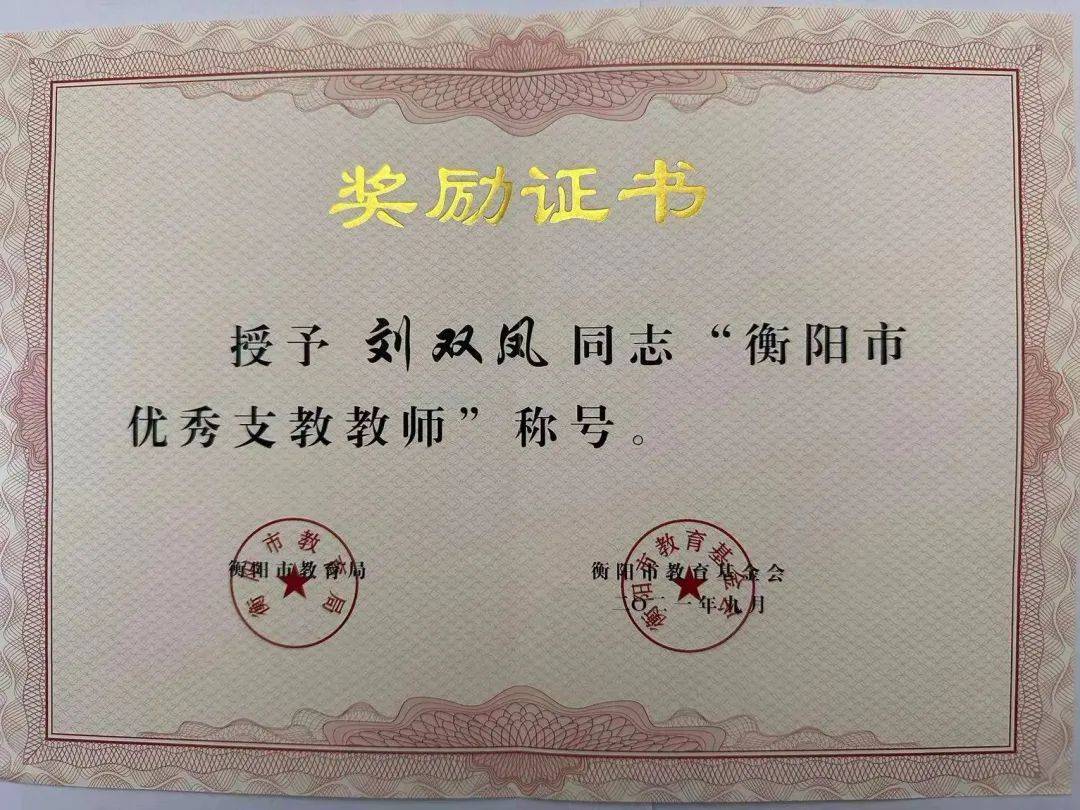 刘双凤,中共党员,中小学一级教师,衡阳市优秀班主任,衡阳市优秀支教老师。