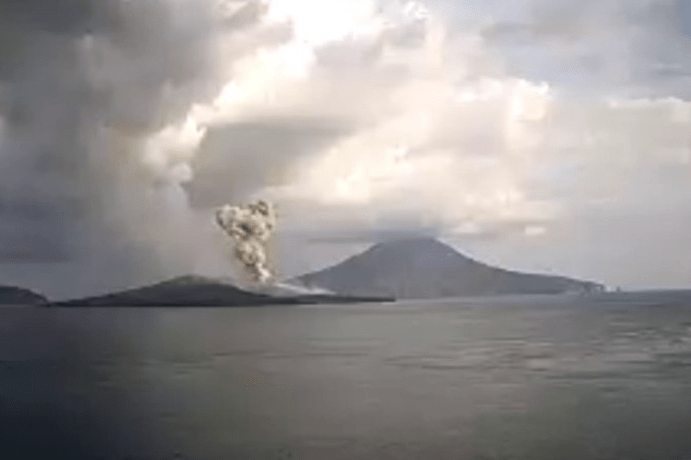 原标题:印尼喀拉喀托火山28日发生多次喷发 火山灰柱最高达2000米