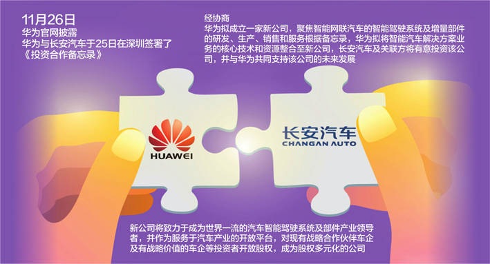 《投资合作备忘录》内容显示,华为新公司将基于市场化原则独立运作,采用市场化的管理体系及薪酬激励框架,业务范围包括汽车智能驾驶解决方案、汽车智能座舱、智能汽车数字平台、智能车云、AR-HUD与智能车灯等。同时,专用于华为新公司业务范围内的相关技术、资产和人员将都被注入该公司中。