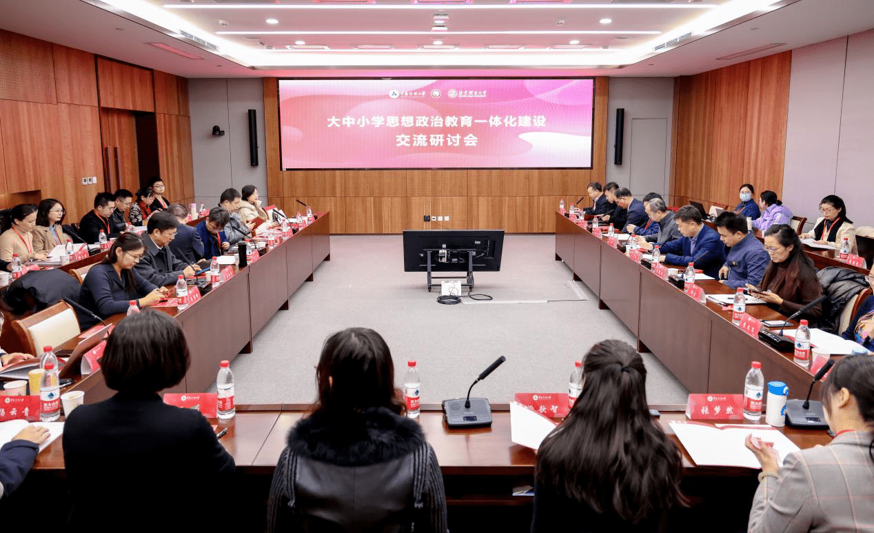 千龙网北京11月27日讯(记者陈泫铭)11月25日,大中小学思想政治教育一体化建设交流研讨会在中国传媒大学举办。40余位来自全国各地大中小学校的思政教育工作者及专家学者汇聚一堂, 总结交流思政课教学、善用"大思政课"以及协同推进大中小学思政教育一体化建设的特色做法,进一步探讨深化建设举措路径。