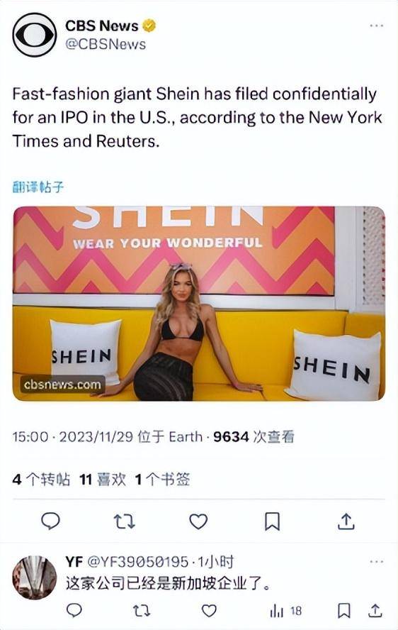 Temu的一骑绝尘,也让Shein感受到了紧迫,上市的步伐明显提速。11月29日,CBS援引纽约时报消息称,Shein已经开始在美国低调路演,并秘密申请上市,高盛、摩根大通和摩根士丹利为主承销商,上市时间为 2024 年。