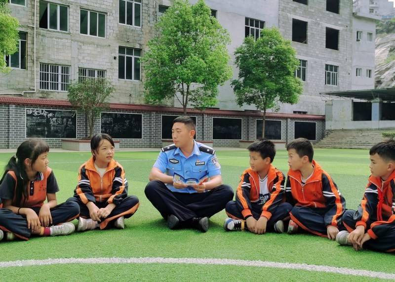 关中坝派出所民警与学生交谈中。刘丹丹摄