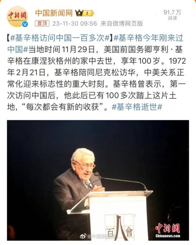 基辛格今年刚来过中国