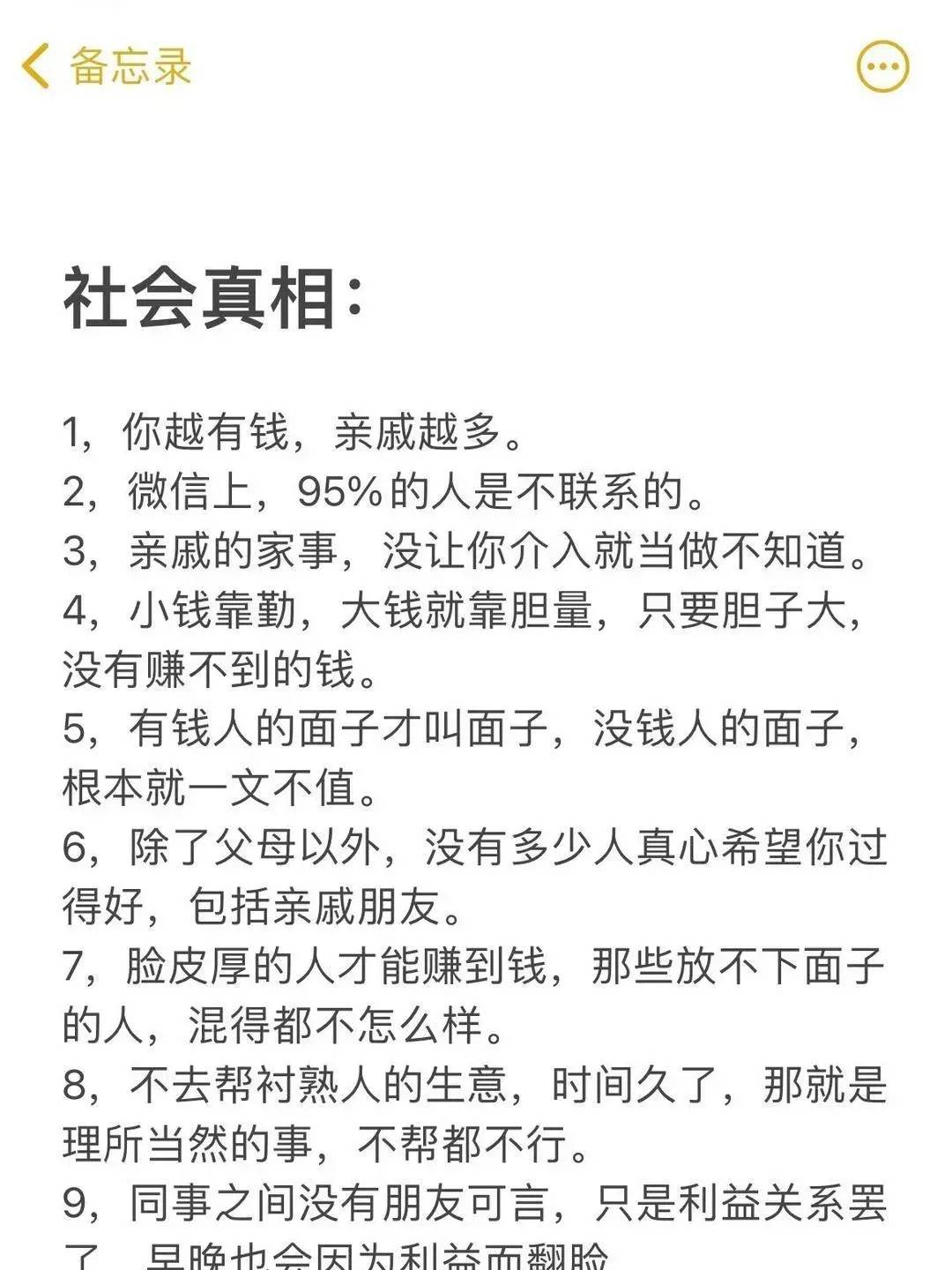 比如,当你越有钱的时候,你的朋友也就越多;当你没钱的时候,几乎没有什么朋友了。不要觉得社会太现实,因为朋友是以财相聚、利散则散。