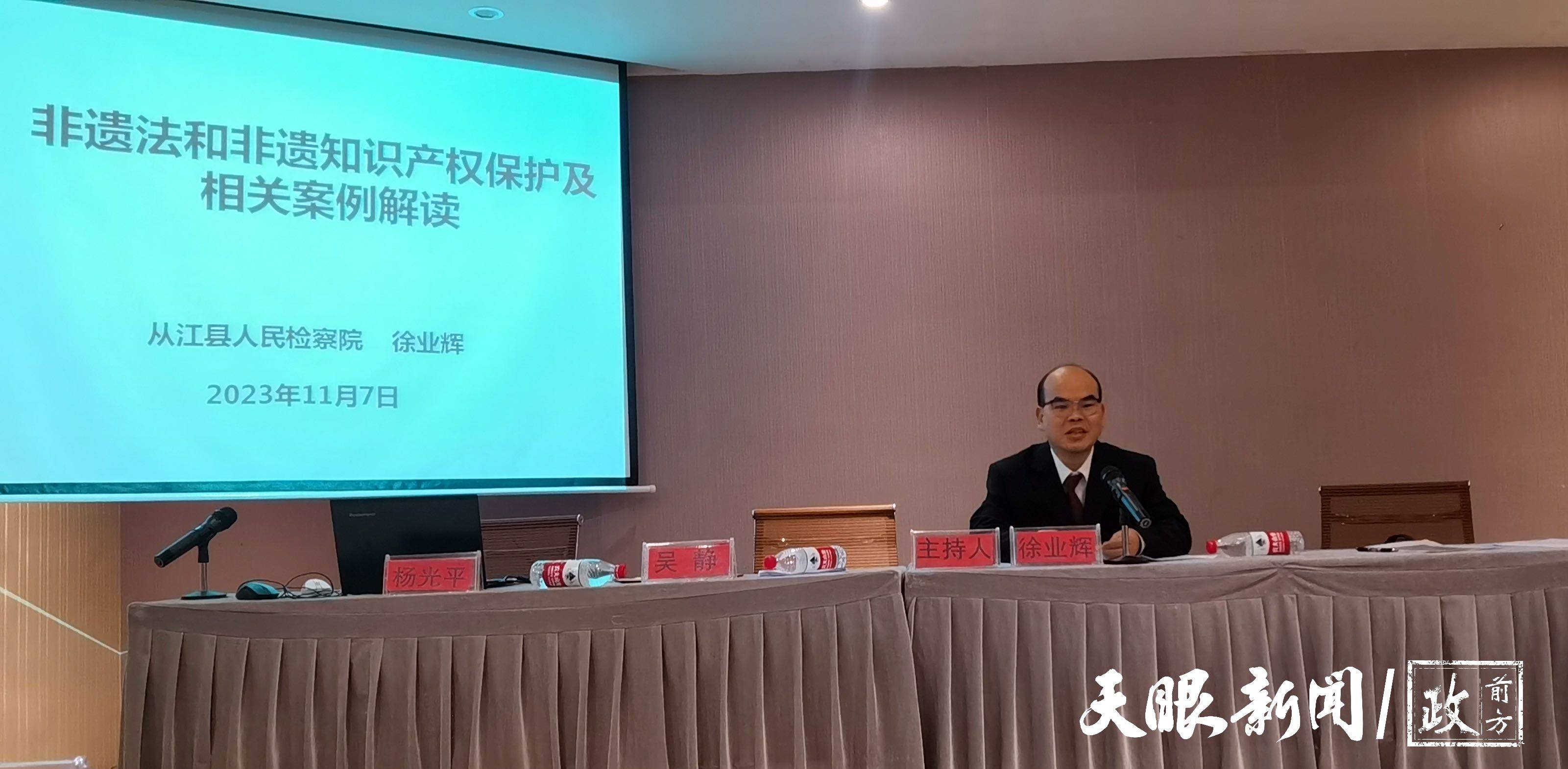 讲座现场,徐业辉还介绍了从江县检察机关近年来开展非物质文化遗产保护的工作情况,展现了检察机关通过公益诉讼、支持起诉等融合履职方式,加强对非物质文化遗产的司法保护取得的成效,使非遗传承人对非物质文化遗产知识产权和知识产权保护有了更深刻的认识,对进一步推动从江非遗保护传承发展起到积极作用。