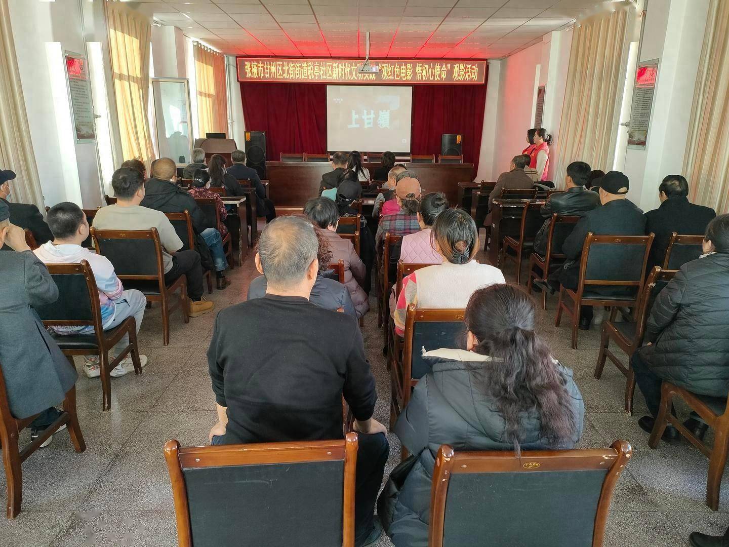甘州区北街街道税亭社区开展“观红色电影 悟初心使命”主题观影活动