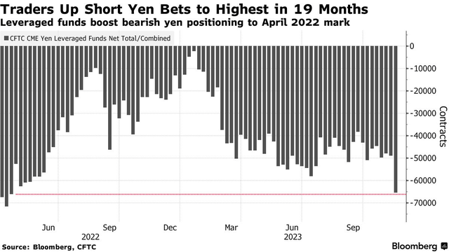 尽管日本央行在收紧政策方面采取了一些初步举措,即“松绑”YCC,为10年期日本国债收益率提供了更大的上升空间。但迄今为止,这些举措都未能刺激日元持续上涨,因此,投机者正在加大对日元的看跌立场日元,这表明华尔街的一些人担心日元今年的疲软可能会加剧。
