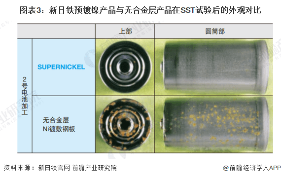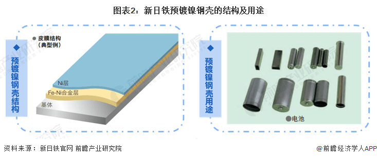 新日铁的预镀镍产品为SUPERNICKEL,能形成Fe-Ni合金层,具备优异的附着性、耐蚀性以及与不锈钢同等的耐热性,可用于一次/二次电池壳体、二次电池负极集电体、电烤箱反射板以及燃料加油管部件。