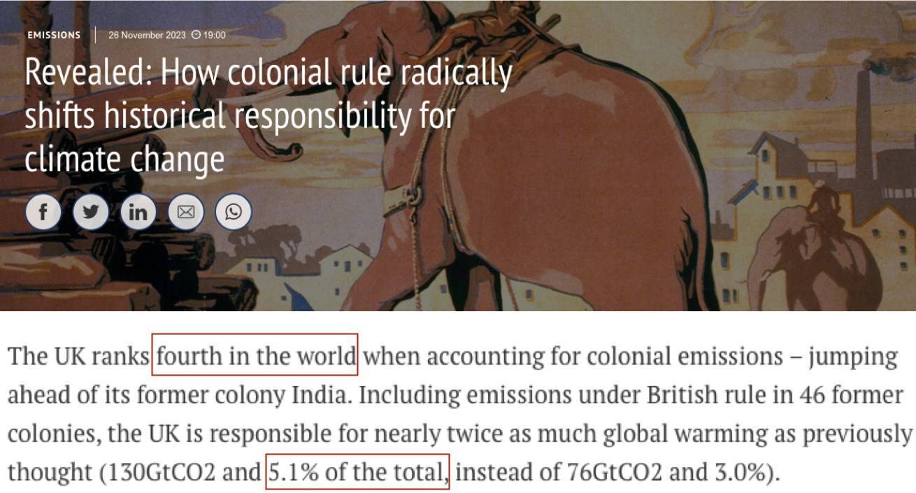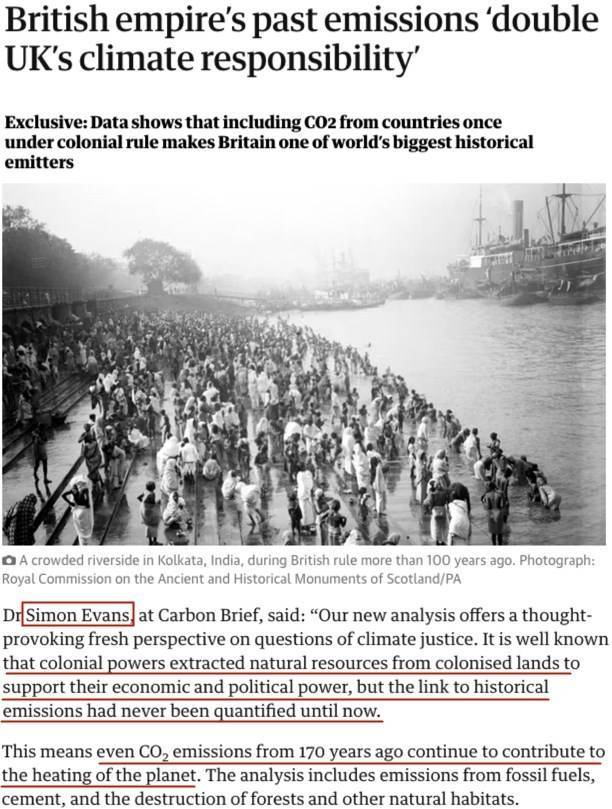 “碳简报”组织研究员西蒙·埃文斯认为,这一研究结果强化了欧洲前殖民帝国对当前全球气候变暖负有的重大历史责任。