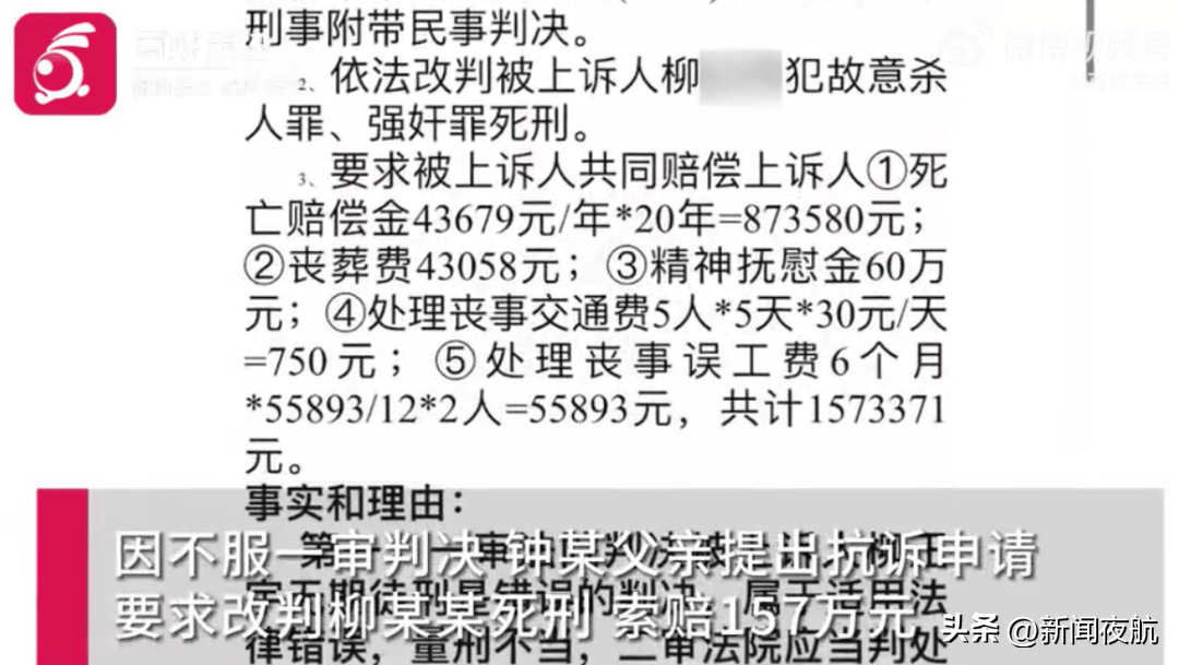 2023年7月江西宜春中院以故意杀人罪、强奸罪判处柳某某无期徒刑,支付赔偿5.5万余元。
