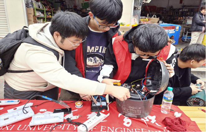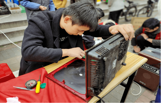 活动伊始,小区的居民们纷纷带着家中出现故障的电风扇、电饭锅、水壶等家电前来寻求帮助。志愿者们不畏寒冷,各显其能,为居民们一一查看电器故障并进行维修。他们用专业的知识和技能,现场为居民们解决了问题,让家电重新恢复工作。无论是拆装、检测还是维修,志愿者们都展现出了极高的专业素养和技能水平。