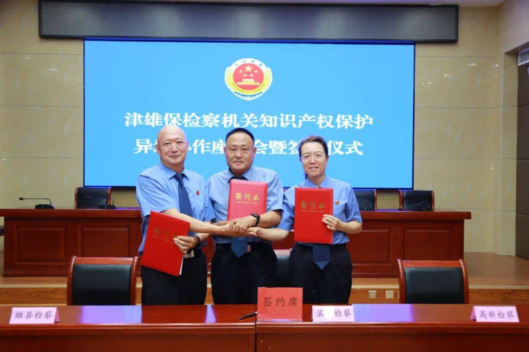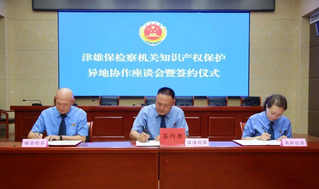 日前,天津市滨海新区检察院与河北省雄县检察院、保定高新技术产业开发区检察院共同签订《关于加强知识产权检察工作协作配合的意见》(下称《意见》),充分依托天津滨海新区、河北雄安新区以及保定高新区的优势和资源特点,全面做好知识产权严格保护、协同保护、平等保护、公正合理保护,以高质效知识产权检察履职为京津冀协同发展提供有力法治保障。