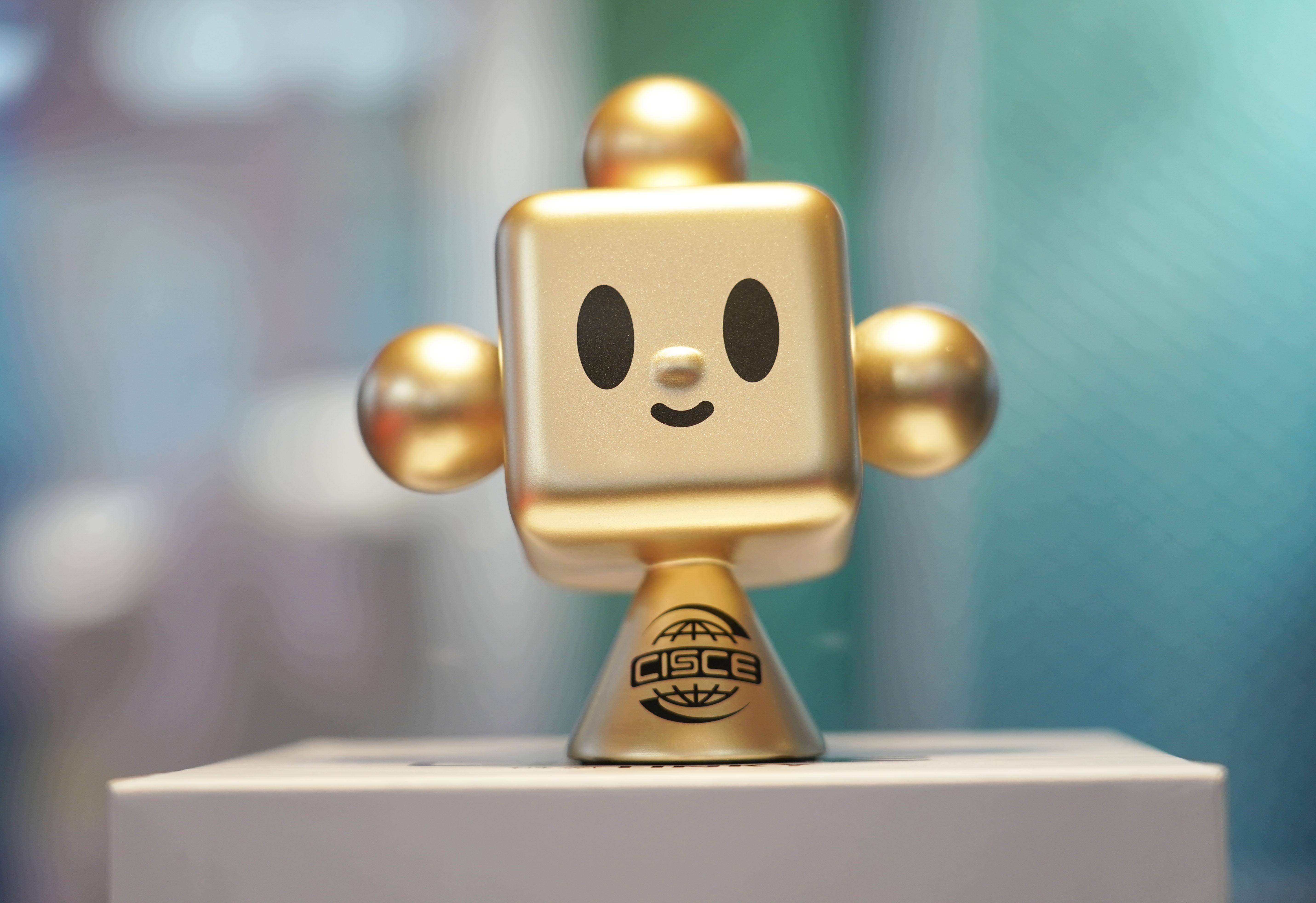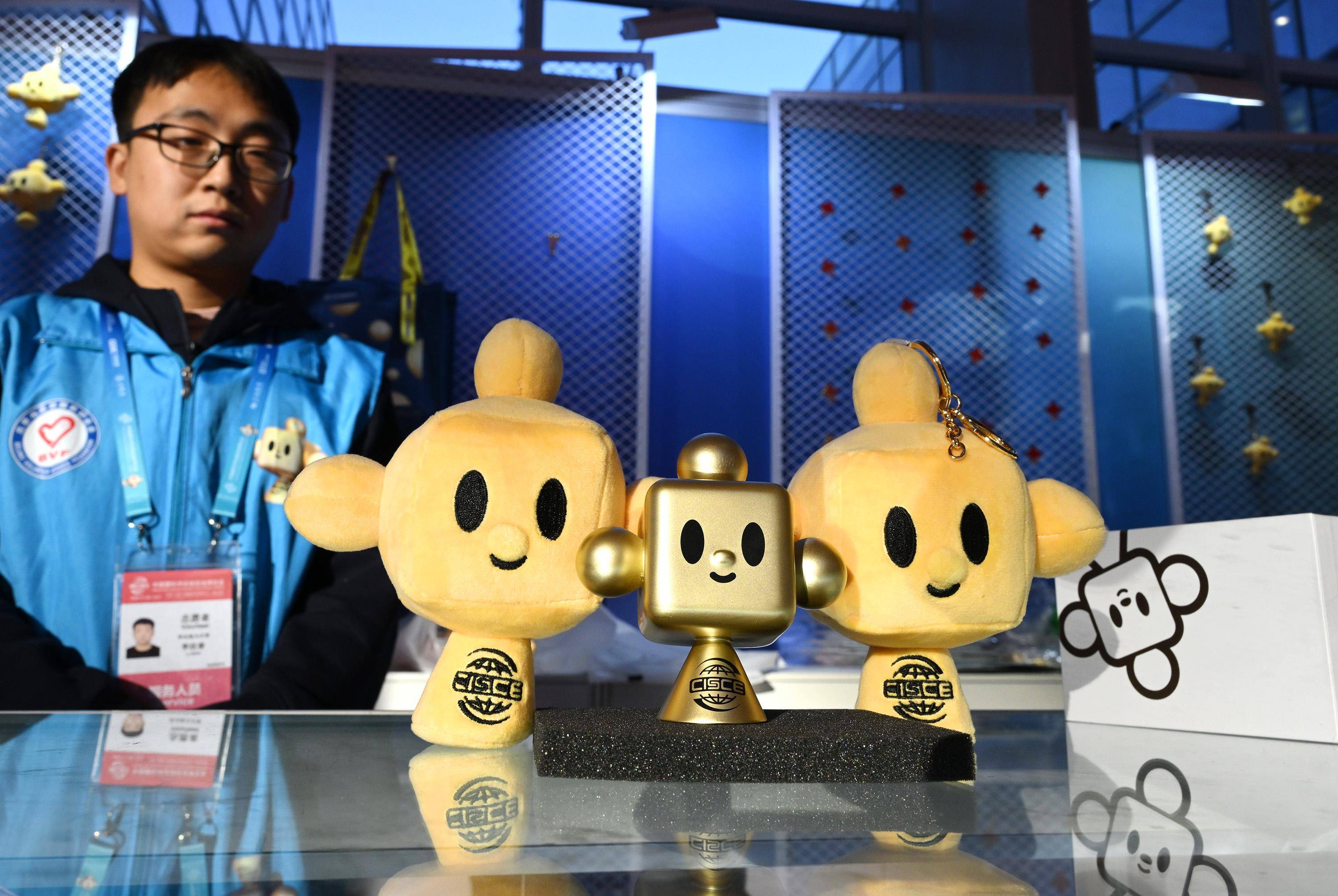 11月29日在链博会文创小店拍摄的“链氪”文创产品。 新华社记者 任超 摄