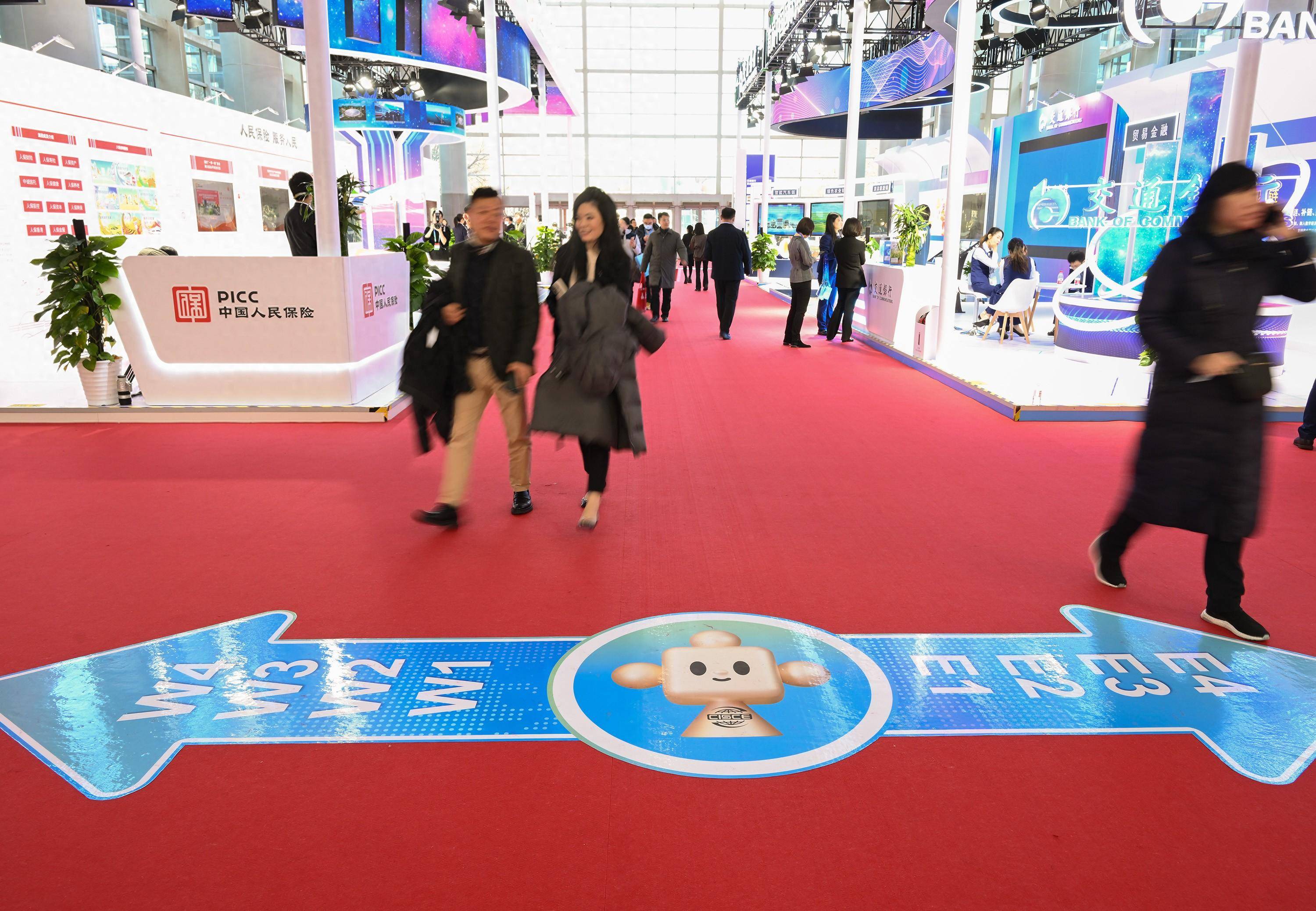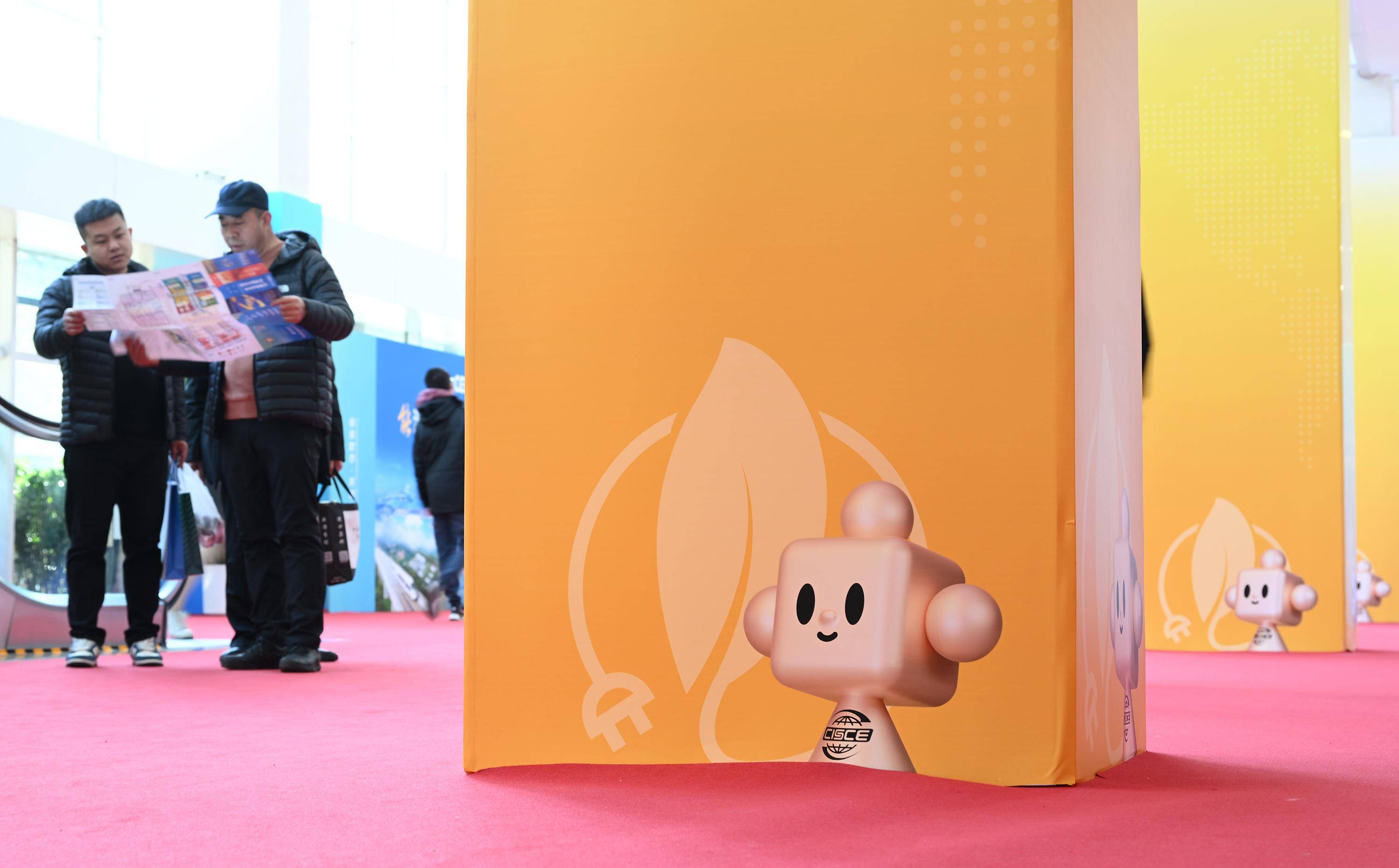 11月29日,在链博会会场随处可见带有“链氪”形象的道路导引标识。 新华社记者 李贺 摄