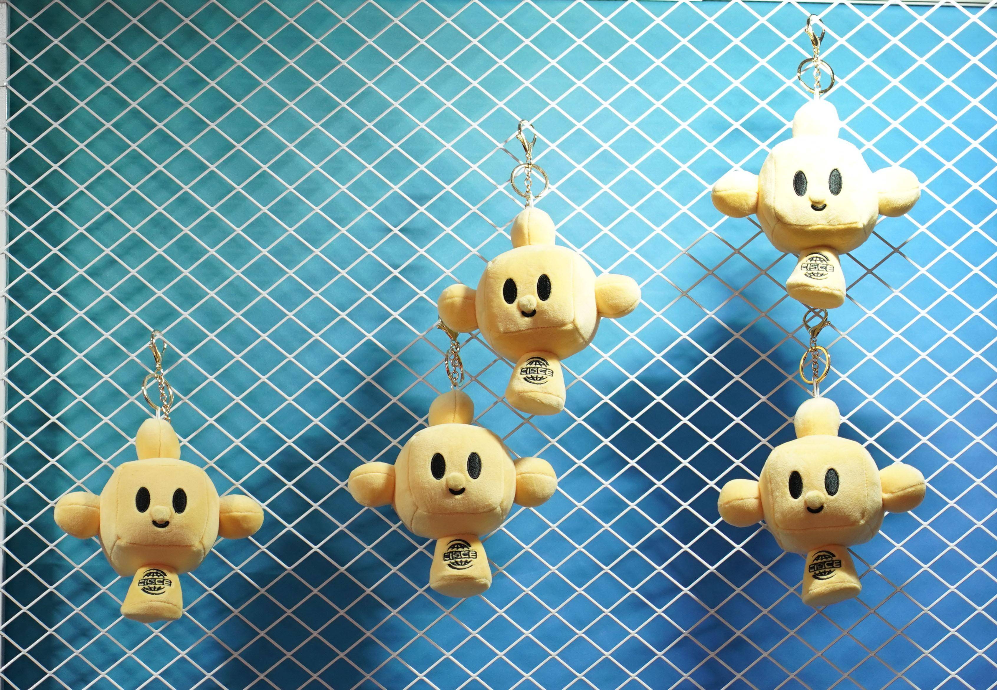 11月29日,链博会媒体工作区的一处柜台上摆放着“链氪”毛绒玩具。 新华社记者 李贺 摄