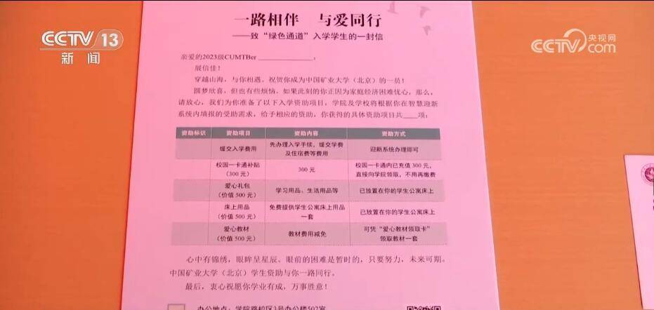 中国矿业大学(北京)已经提出申请国家助学贷款的家庭经济困难学生有600多名,约占本科新生总数四分之一。在沙河校区的新生报到现场记者看到,“绿色通道”设在各院系报到处,在发放给学生的“致‘绿色通道’入学学生的一封信”中,详细介绍了家庭经济困难新生可以获得的资助项目。