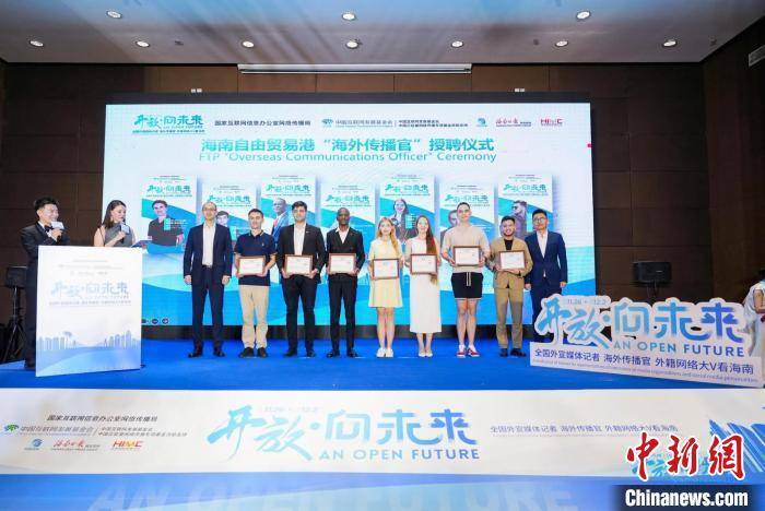11月27日,“开放·向未来——全国外宣媒体记者、海外传播官、外籍网络大V看海南”活动在海口启动。图为海南自贸港“海外传播官”授聘仪式。海南国际传播中心供图