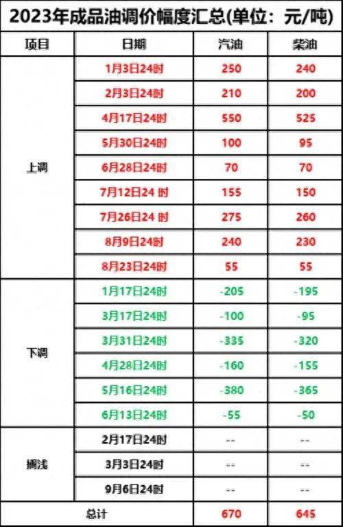 自2023年8月23日国内成品油价格调整以来,国际市场油价震荡运行,按现行国内成品油价格机制测算,9月6日的前10个工作日平均价格与8月23日前10个工作日平均价格相比,调价金额每吨不足50元。根据《石油价格管理办法》第七条规定,本次汽、柴油价格不作调整,未调金额纳入下次调价时累加或冲抵。