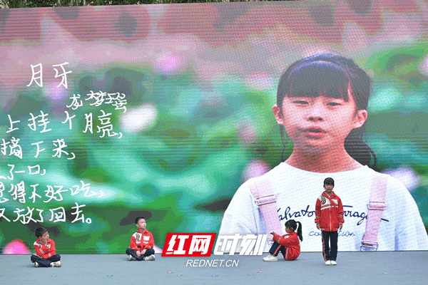怀化市会同县坪村镇粟裕希望小学的孩子们表演原生态诗歌《大山里的小诗人》。