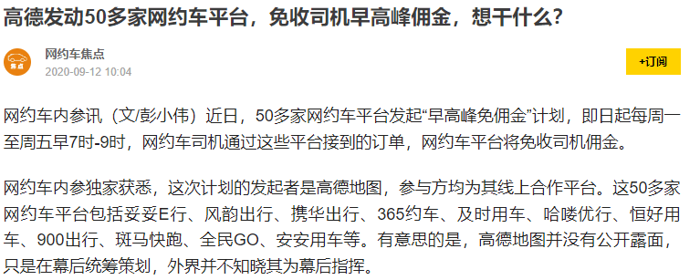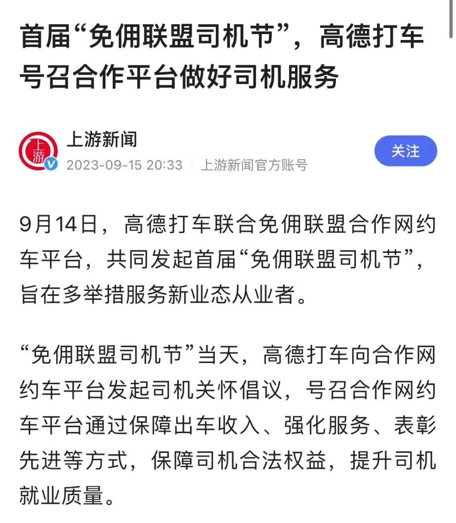 但最近也有媒体认为,高德发起的免佣活动,有利于提升司机就业质量。