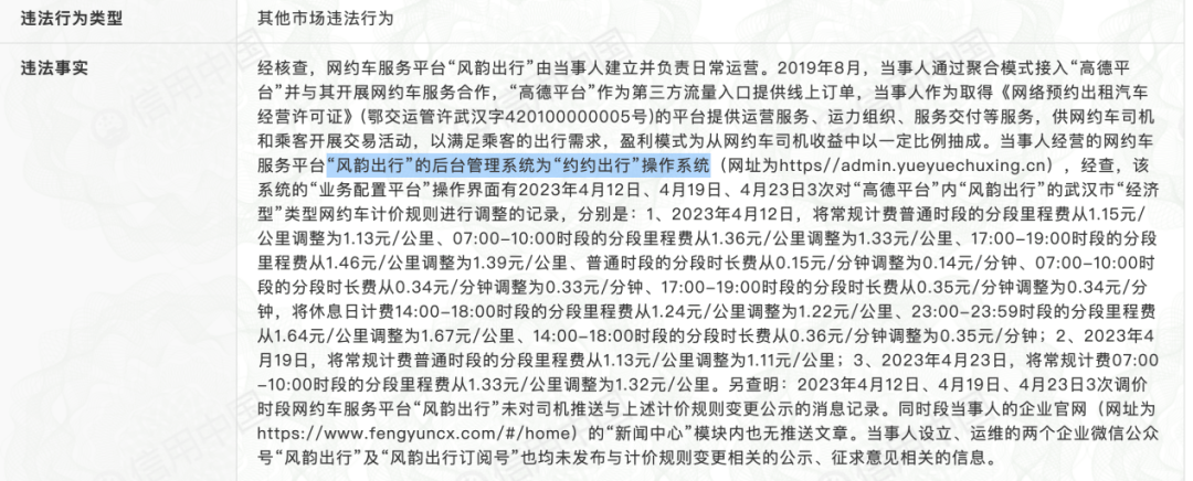 8月9日,武汉市青山区市场监督管理局公布了一则37万元的处罚:高德合作网约车平台风韵出行,使用“约约出行”的操作系统,在今年4月先后三次下调了其在武汉的网约车计价规则,没有提前在司机端和面向社会公示。